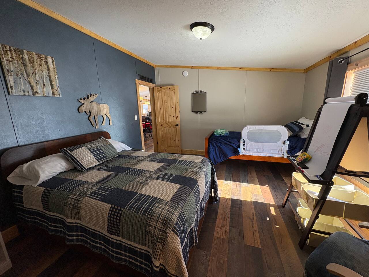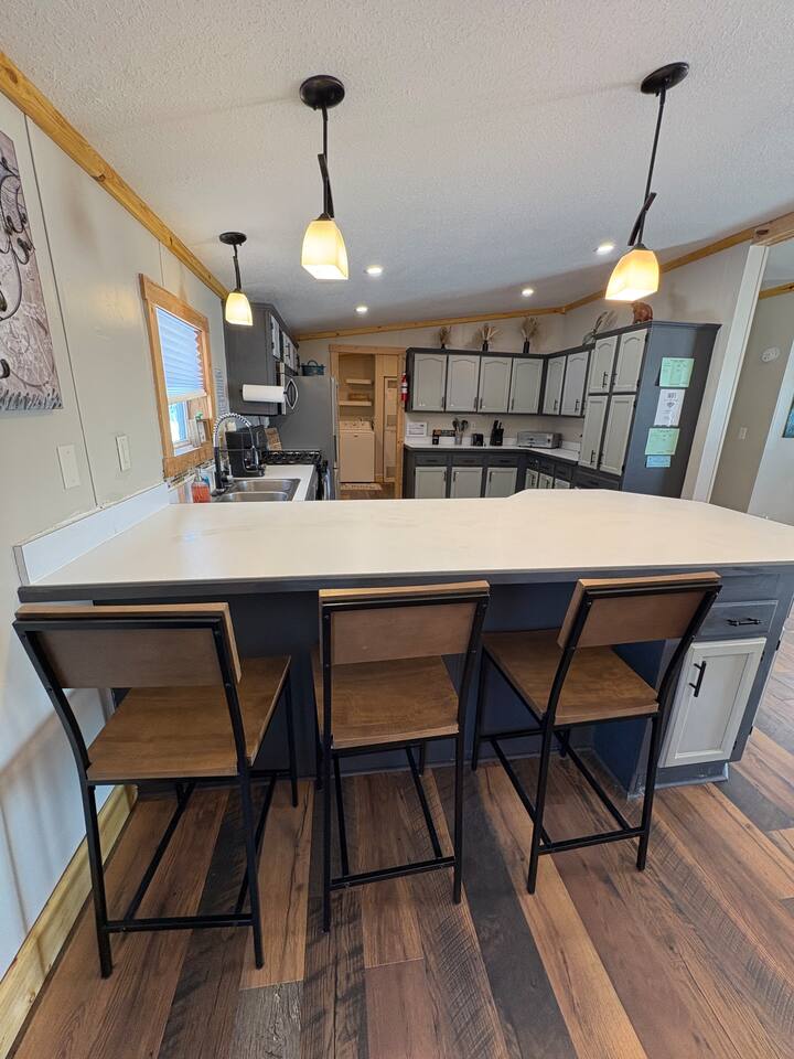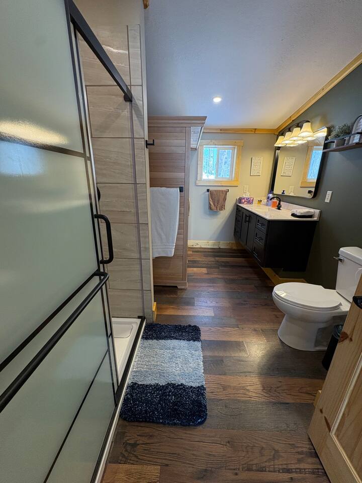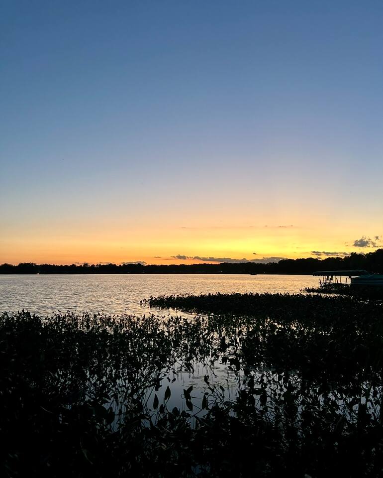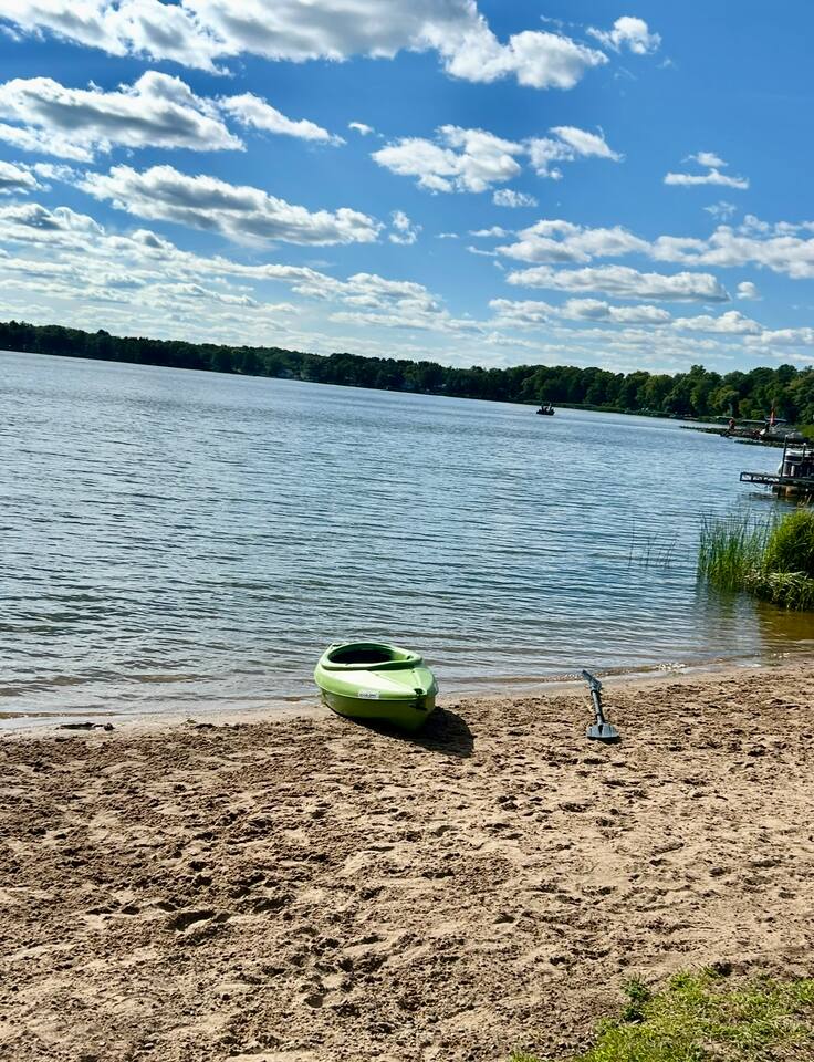 This lakefront home in Clayton, Wisconsin has beautiful views and direct access to Lake Magnor. Perfect for any season, you can come for great ice fishing and snowmobiling during the cold months or plan your summer getaway with countless opportunities for leisure. Wisconsin is home to over 1,800 miles of ATV trails and this home has direct access to them! During the warm months - when you aren’t utilizing the private dock to fish, swim, or kayak, you can utilize the grill and firepit for cookouts or play one of our many outdoor games. Feel free to tie up your own pontoon, boat, or jet ski as all are allowed on this lake and the boat landing is nearby! Enjoy a beautiful sunrise or sunset from an outdoor seating area right on the property. And if you’d like to get your toes in the sand, grab our wagon and load up your gear and some snacks because the public beach is just a short walk down the road from here. If you feel so inclined, you could also take the short 10 mile drive to the St. Croix Casino in Turtle Lake any time of year! Inside this spacious 3 Bedroom, 2.5 Bathroom home, you will find a comfortable and sunny living and dining space with a spacious and well-equipped kitchen that has all of the appliances needed to accommodate making your delicious meals (including a dishwasher so no fights on who scrubs the dishes!) The bedrooms are spacious and include several accommodations to make your stay comfortable including new mattresses and bedding for each of the beds. The house has central air and heat for the large temperature swings in Wisconsin. The master bedroom has a king bed with an on-suite bathroom! The on-suite bathroom has a large, beautiful shower and a 3 person sauna! Bedroom 2 has a queen bed with a view of the lake. Bedroom 3 a double and a twin bed. This home is very kid-friendly with access to a pack-n-play, high chair, and variety of toys on site. The 2nd full bathroom has a bath tub and shower combo to make it easy to clean off those kiddos after the day’s fun. Guests also have access to the laundry room where we have a washer and dryer on site to throw in your clothes and towels as needed, so you are ready for the next day’s adventures. There is also an attached game room where we will have a table for playing cards and other activities to come!